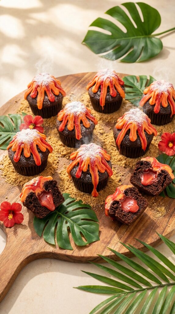 Add crushed graham crackers around the base for rocky texture. Want extra drama? Tuck a small piece of red candy inside before baking so it melts into a gooey lava center. Kids absolutely lose it when they bite in and uncover that surprise. These cupcakes pair beautifully with other Moana-themed party elements like tropical decorations and island-inspired treats to create a truly cohesive celebration spread.