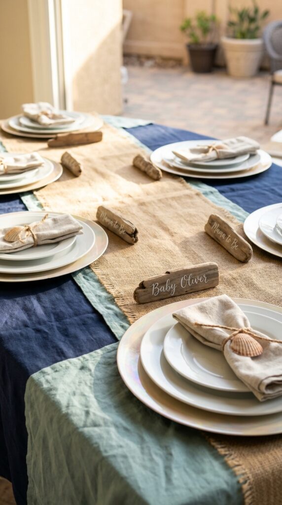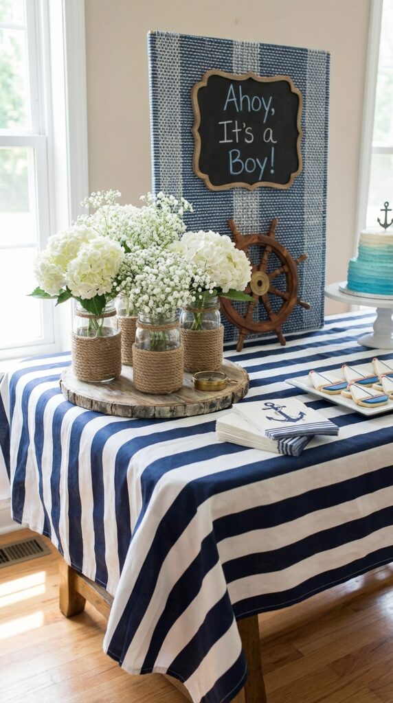While ocean themes capture the mystery of deep waters, adding nautical elements alters your baby shower into a charming sailor’s celebration that feels both adventurous and cozy.