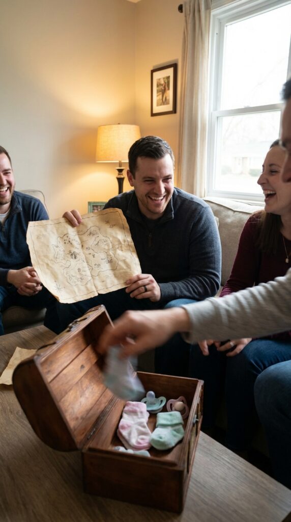 Start by creating clues with oceanic riddles. I love writing hints like “Where waves crash but never get wet” (answer: bathtub). Hide treasure chests filled with baby-themed goodies throughout your space—think pacifiers, mini lotions, or cute socks.