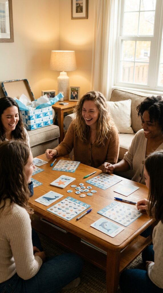 Nautical charades gets everyone moving with ocean-related prompts like “swimming dolphin” or “catching fish.” Set up a “message in a bottle” station where guests write advice for the parents-to-be. You can also organize a “guess the sea creature baby” game using photos of adorable marine animals with their offspring. These activities create lasting memories.
