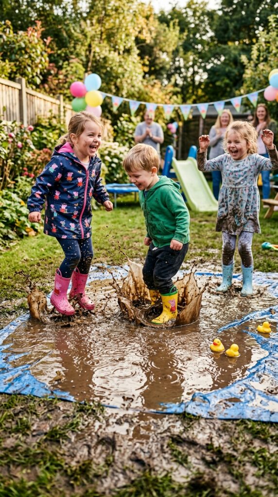 Award silly ribbons like “Muddiest Puddle” to every participant.