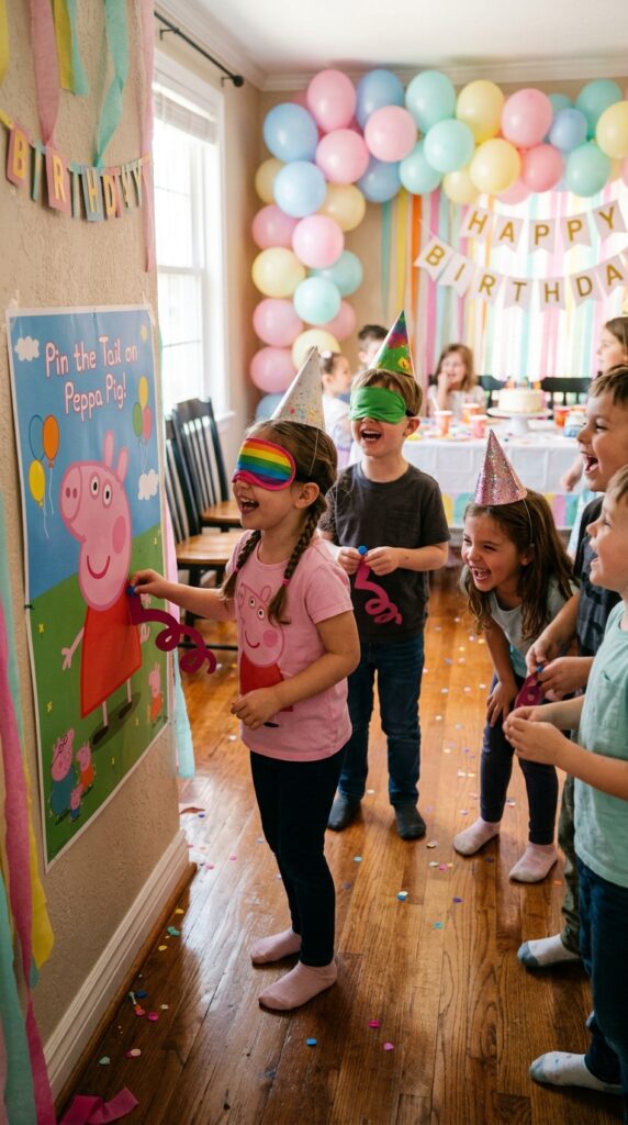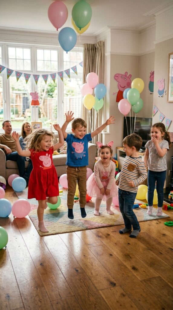 This game fits perfectly within Peppa Pig party setups designed specifically for three-year-olds who thrive on simple, engaging activities.