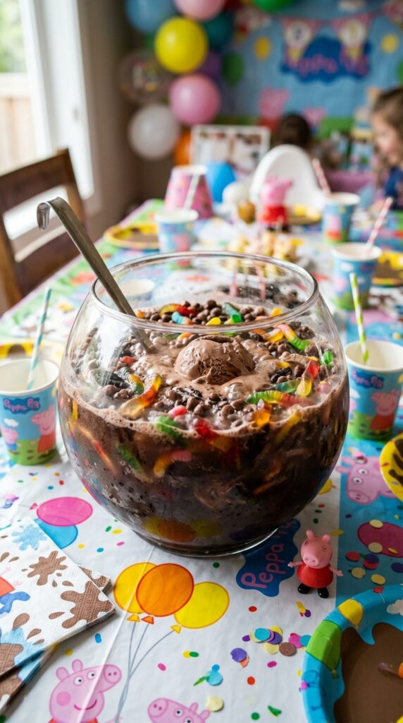While cupcakes bring the cuteness factor, nothing pulls kids into a theme quite like a dessert they can relate to a scene from the show. Peppa’s muddy puddles are iconic, and dirt cup puddings nail that moment perfectly.