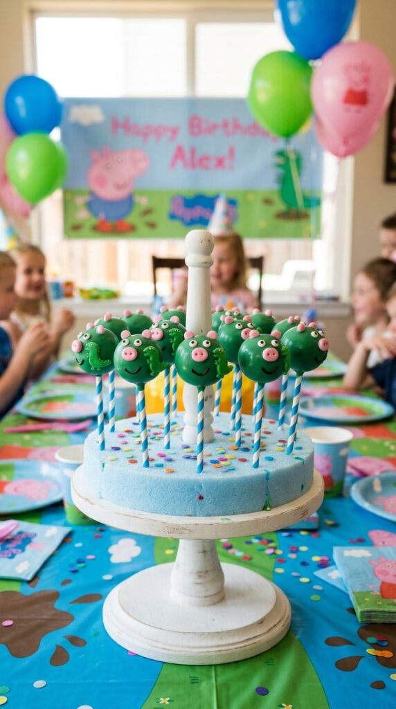While Peppa Pig steals most of the spotlight, her little brother George deserves some party love too — and cake pops are the perfect way to make that happen.