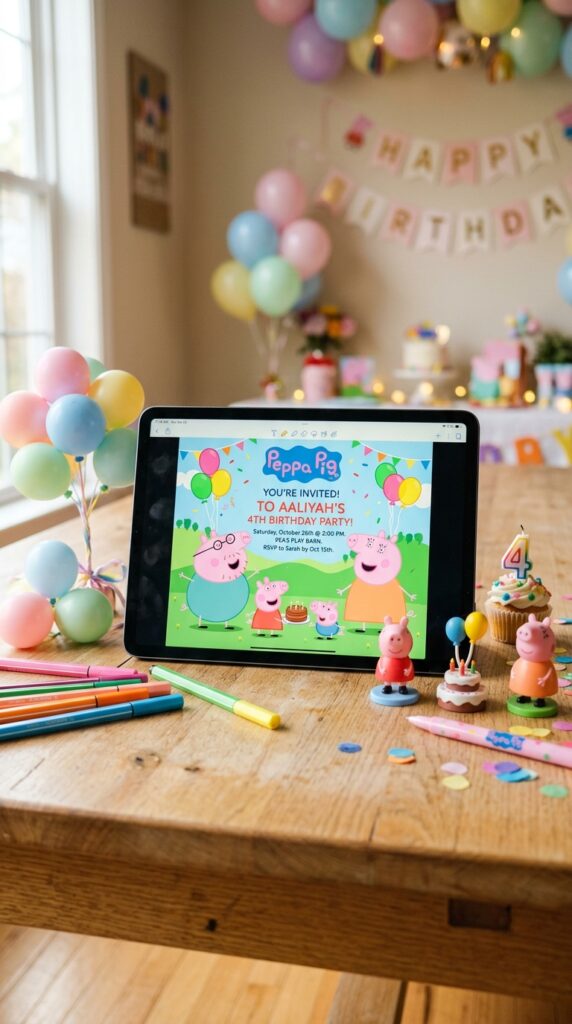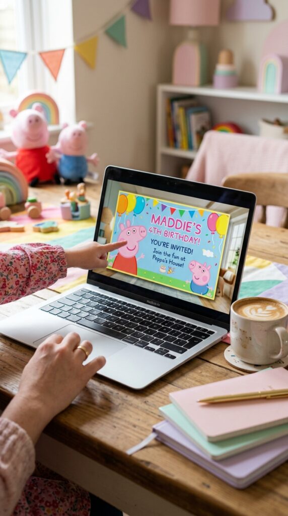 Platforms like Canva and Evite offer adorable Peppa Pig digital design templates you can customize in minutes. Swap colors, add your child’s name, and you’re done.