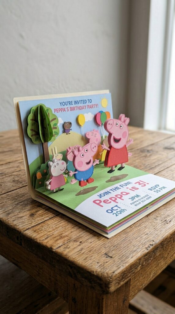 Few things match the sheer delight of opening an invitation that literally pops off the page — and Peppa Pig pop-up and 3D invites take that excitement to a whole new level before the party even begins.
