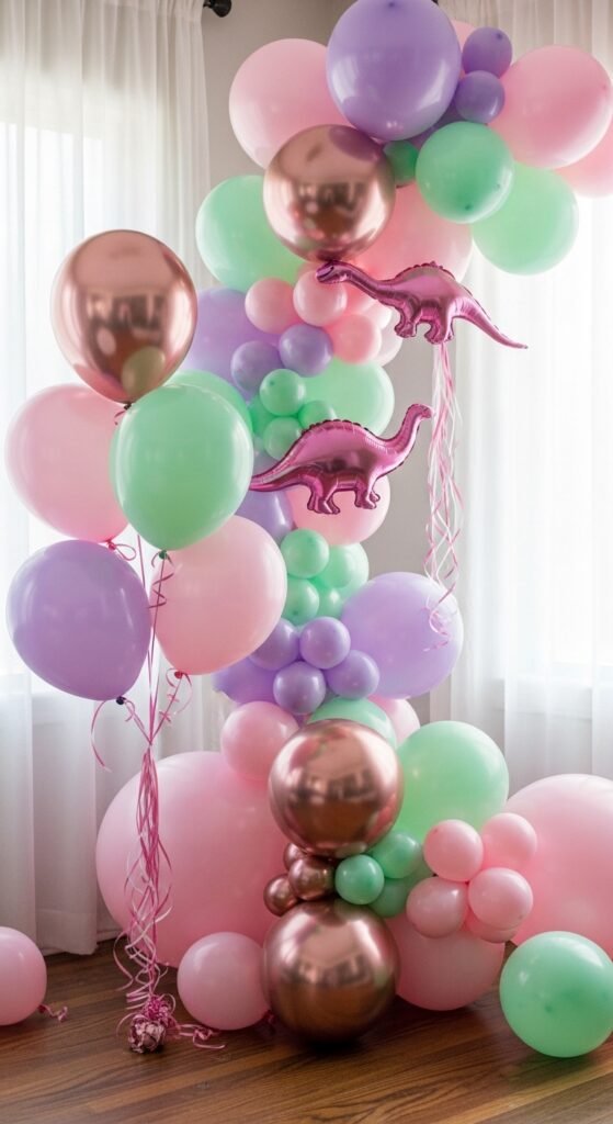 How can you modify your party space into a prehistoric paradise that’s both fierce and feminine? Start with a cotton candy color palette featuring soft pinks, lavender, and mint green. These dreamy pastels instantly soften the dinosaur theme while maintaining that magical prehistoric vibe.