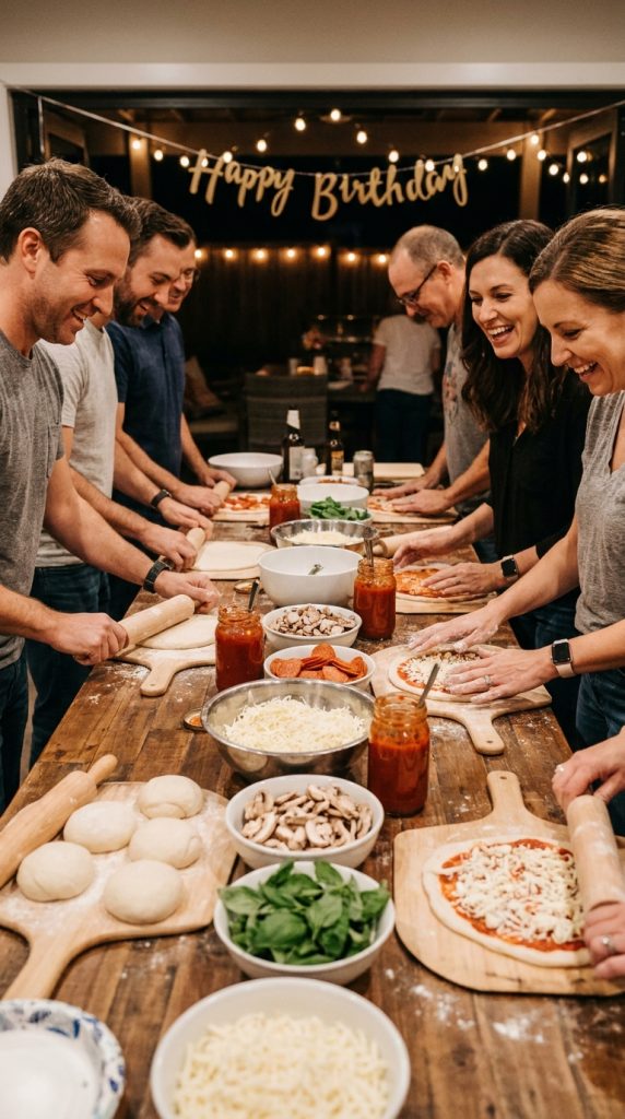 Keep the setup simple: pre-portioned dough rounds, toppings organized left to right, and a dedicated baking station nearby. Adults love feeling involved, and this doubles as easy entertainment between cake cutting and gift opening. It’s low-cost, low-stress, and surprisingly high-reward.