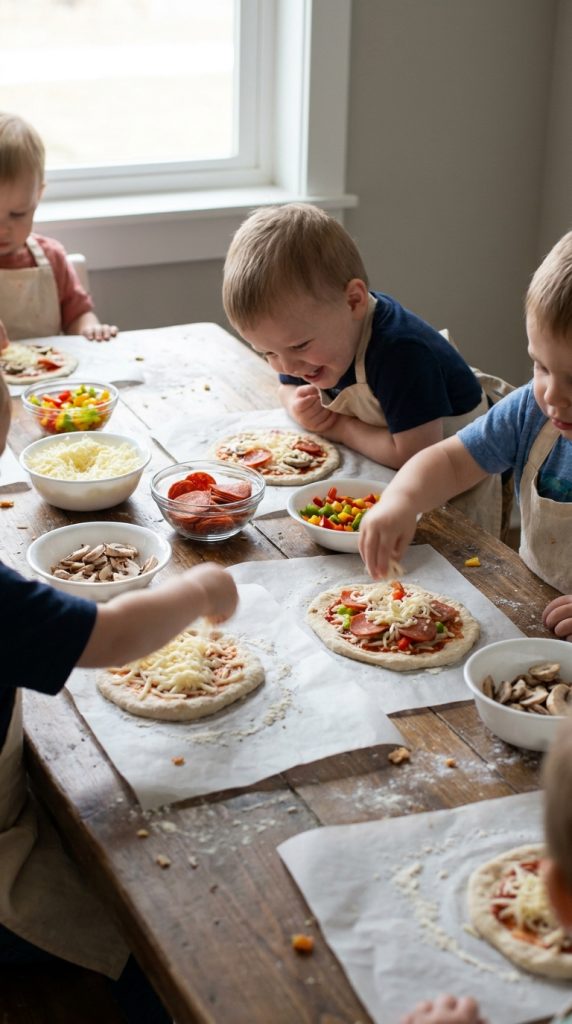 Supervise closely, but let kids spread their own sauce and pile on cheese topping to their heart’s content. It’s messy, it’s joyful, and honestly, it’s the highlight of the party.