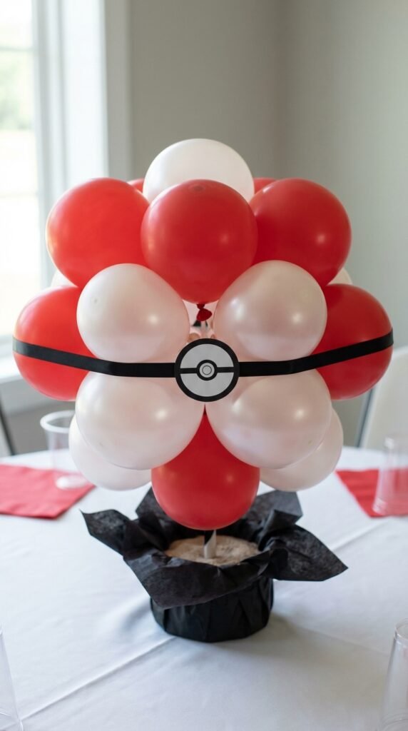 Classic Pokeball Centerpieces Using Red and White Balloons