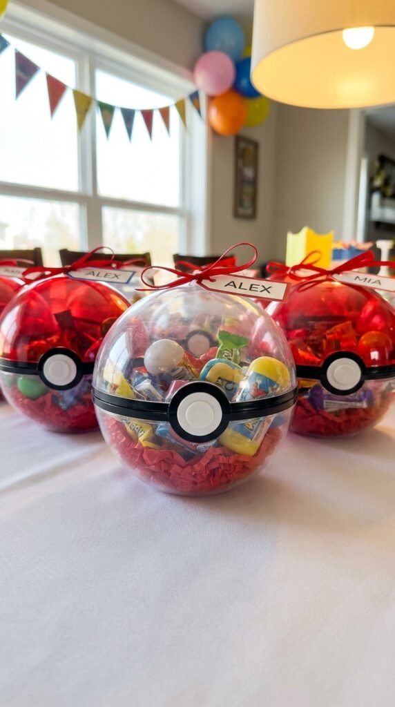 Candy-Filled Pokeball Containers as Take-Home Centerpieces