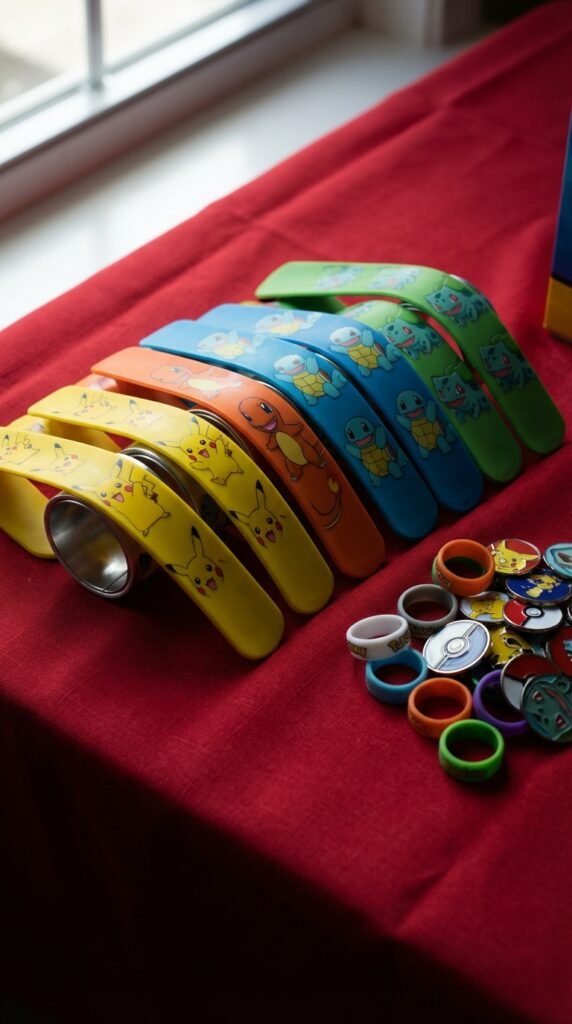 Beyond bracelets, consider pokemon themed jewelry like charm necklaces or silicone rings featuring Pokeballs. They’re affordable, gender-neutral, and actually get worn after the party ends.