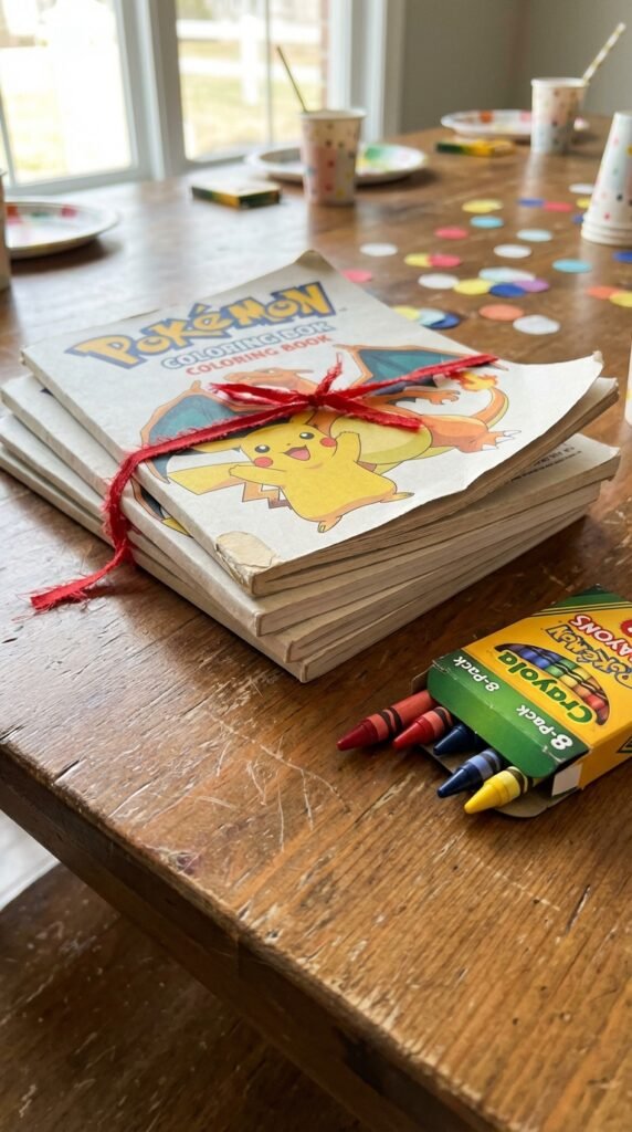 Look for sets that include pokemon character bookmarks as bonus inserts. They’re practical (kids need bookmarks anyway) and extend the Pokemon theme beyond just coloring pages. These combo packs typically cost $3-5 each, making them budget-friendly favors that deliver lasting value.