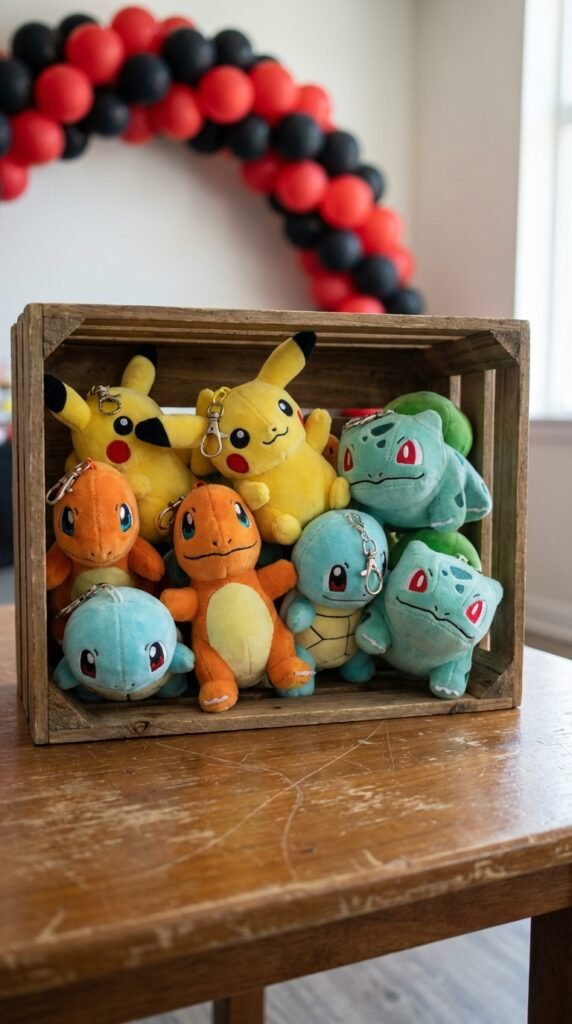 While custom cards let kids imagine themselves as trainers, mini plush Pokemon keychains give them an adorable companion they can actually take everywhere. These soft, pocket-sized characters clip onto backpacks, lunch boxes, or belt loops, making them perfect party favors.