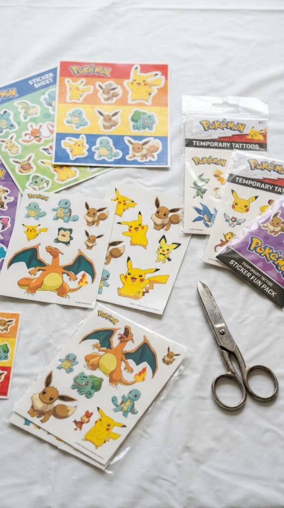 The temporary tattoo variety really shines at parties—you can offer character options ranging from Charizard to Eevee evolutions. They’re waterproof, last several days, and kids think they’re cooler than actual treasure.