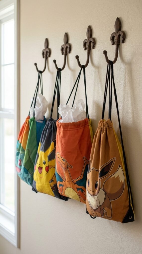 While mini figurines solve the “what” of party favors, drawstring bags brilliantly address the “where to put everything” problem that inevitably strikes halfway through your celebration. These pokemon themed goodie bags metamorphose into instant treasure holders that kids can sling over their shoulders while conquering your backyard obstacle course.