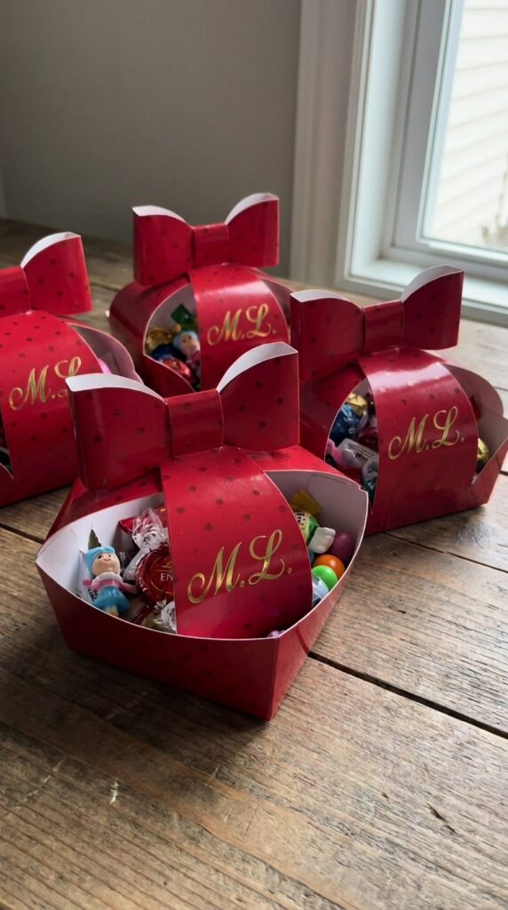 Personalized Red Favor Boxes Shaped Like Minnie’s Bow
