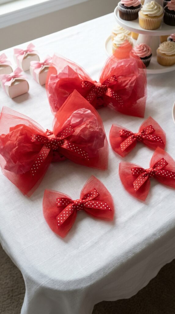 DIY Red Bow Centerpieces Using Tulle and Ribbon