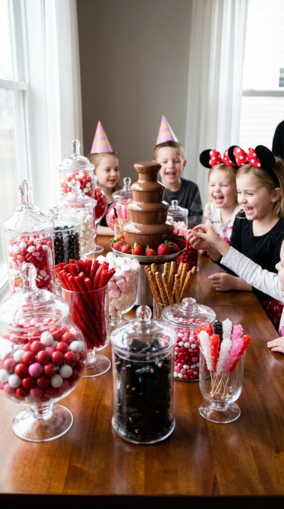 Here’s my favorite trick: add a chocolate fountain display as your centerpiece. Kids absolutely lose their minds over it, and it’s surprisingly affordable to rent.