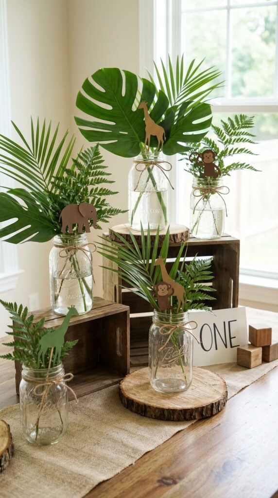 Grab some mason jars, fill them with tropical leaves, and you’ve got charming jungle jars that look intentional and polished.