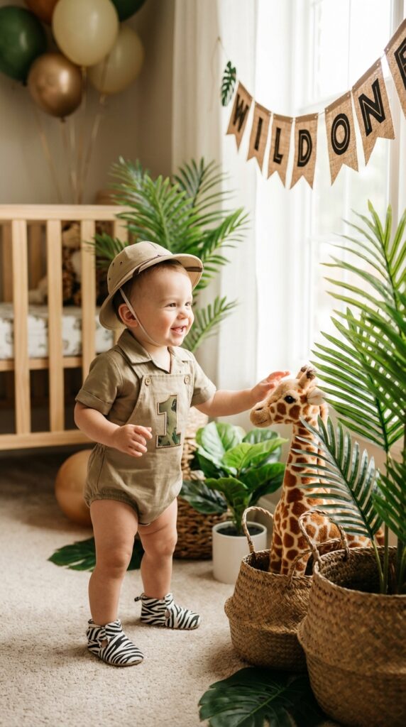 Keep comfort in mind too — your birthday baby will be moving, eating, and celebrating all day long. Don’t forget that safari explorer outfits work beautifully for guests too, making the whole party feel cohesive and fun in photos.