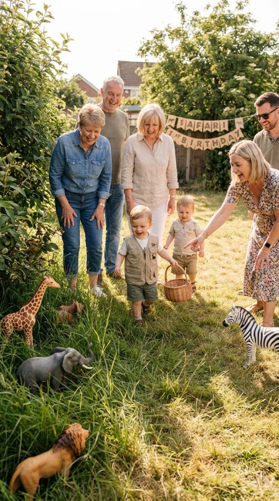 Once everyone’s geared up with their animal ears and jungle outfits, it’s time to get the party moving — and that means games. A safari scavenger hunt works brilliantly for mixed-age crowds.