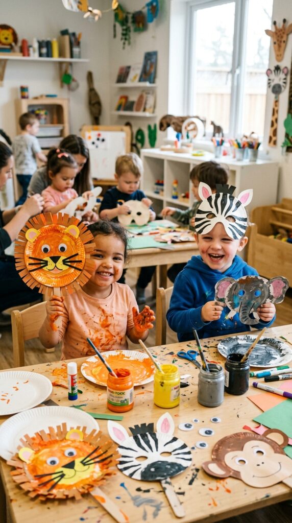 Animal mask crafts are another huge hit — pre-cut eye holes beforehand so little ones just decorate and wear them.