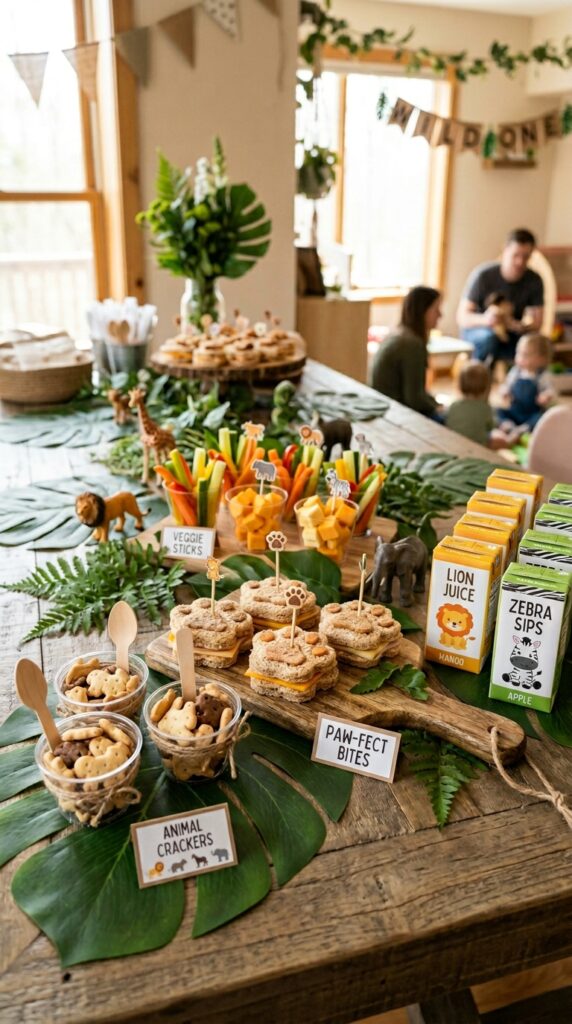 Try serving safari-themed snacks like lion claw pretzel sticks or zebra-striped fruit skewers to keep the wild adventure going right through mealtime.