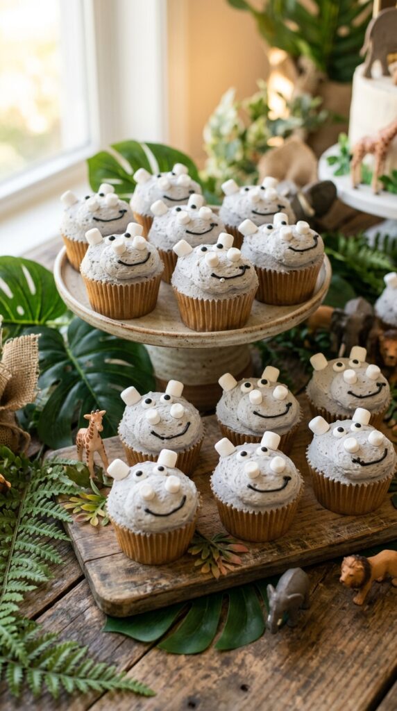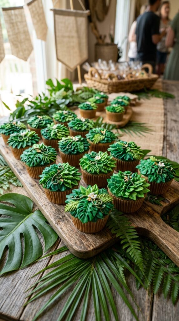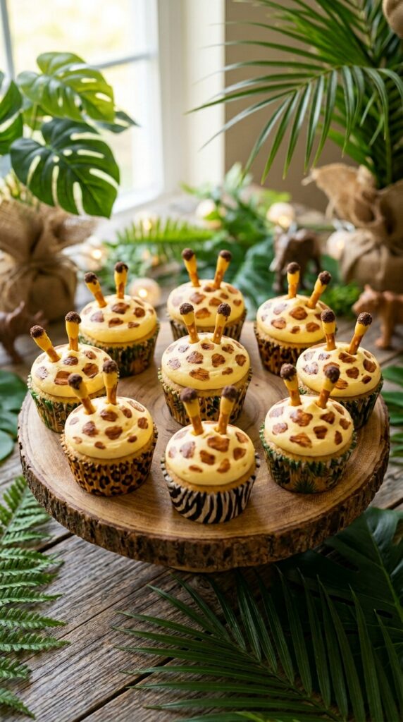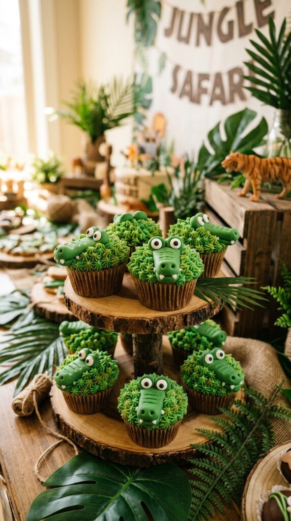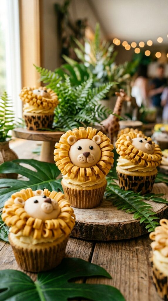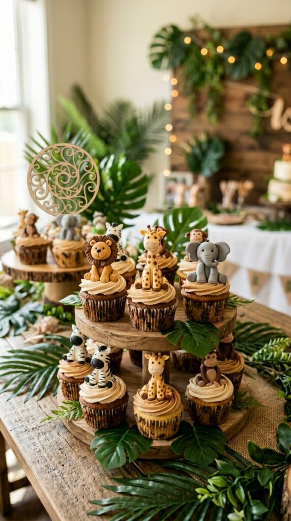 For the littlest guests, pairing these cupcakes with gentle jungle decor keeps the overall party atmosphere fun and age-appropriate without overwhelming toddlers.