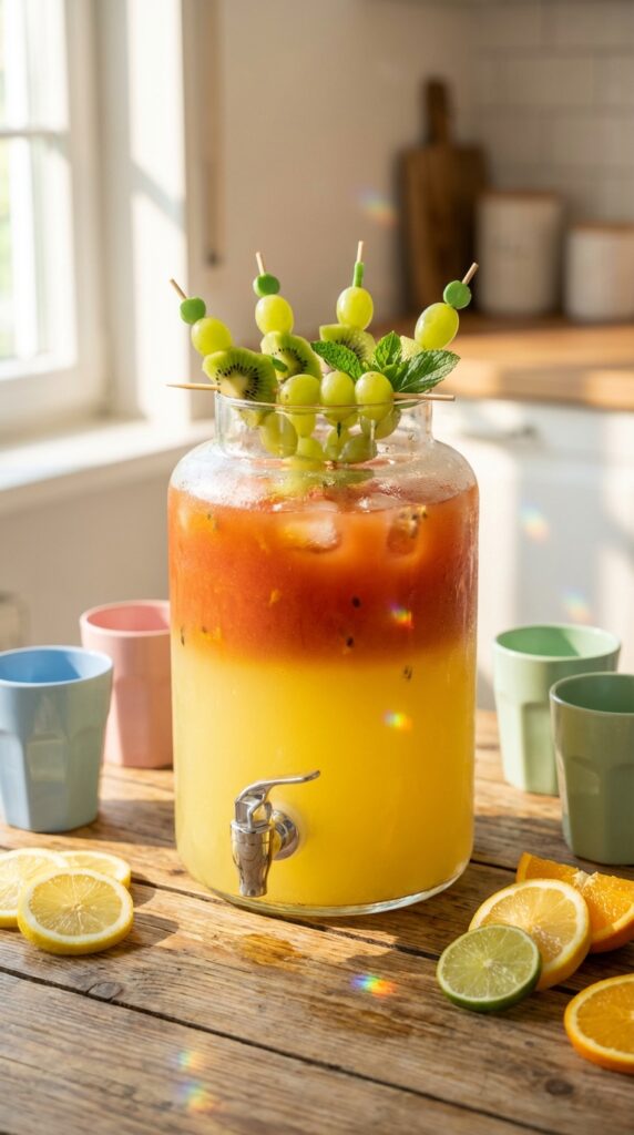 Pour it into a clear dispenser so kids can watch the colors swirl together. Add green fruit skewers on the rim for that jungle vibe. It’s revitalizing, visually exciting, and honestly? Adults will be sneaking cups too.