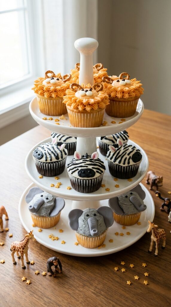 Pre-made fondant animals or printed sugar sheets drop right onto frosted cupcakes instantly. Kids go absolutely wild for them (pun intended), and honestly, they look more impressive than anything you’d spend hours creating from scratch. You can also match your cupcakes to jungle-themed flavors like coconut, mango, or passion fruit to tie the whole safari experience together.