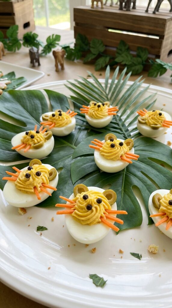 Deviled eggs might sound too fancy for a kids’ party, but trust me — dress them up as lions and they become the most talked-about dish on the table.