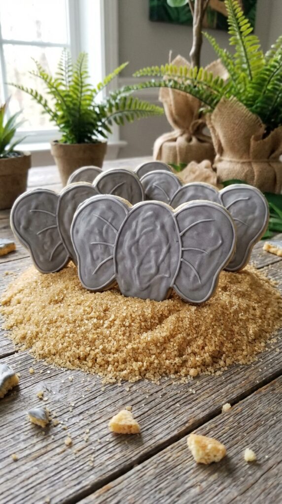For your safari theme, you’ll convert these into elephant ears using gray-tinted royal icing and a toothpick for vein details.
