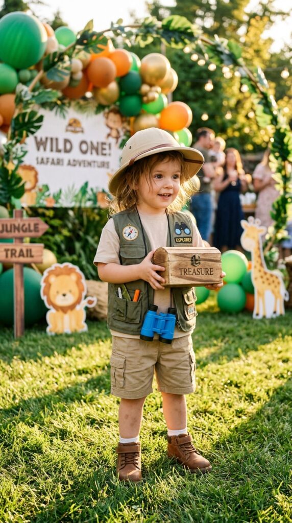 Add adventurer vests with pockets — kids absolutely love storing “treasures” in them throughout the party. Top everything off with safari hats to complete the look while keeping little ones shaded outdoors.