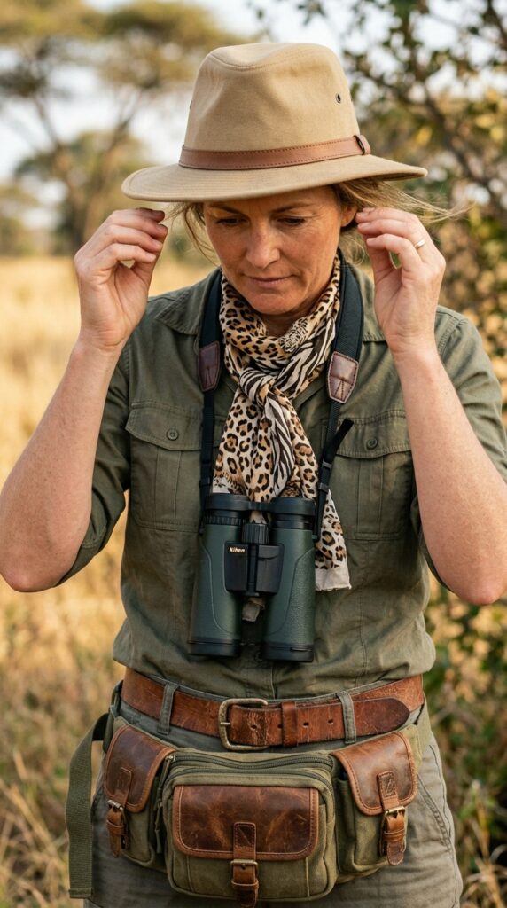 The right accessories can honestly make or break your safari look. Don’t underestimate what a good hat can do — safari hats instantly change any basic outfit into something that looks intentional and put-together.