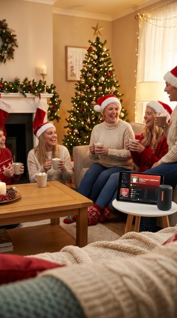 For festive music suggestions, include modern favorites like Mariah Carey’s “All I Want for Christmas Is You” and Kelly Clarkson’s holiday covers.