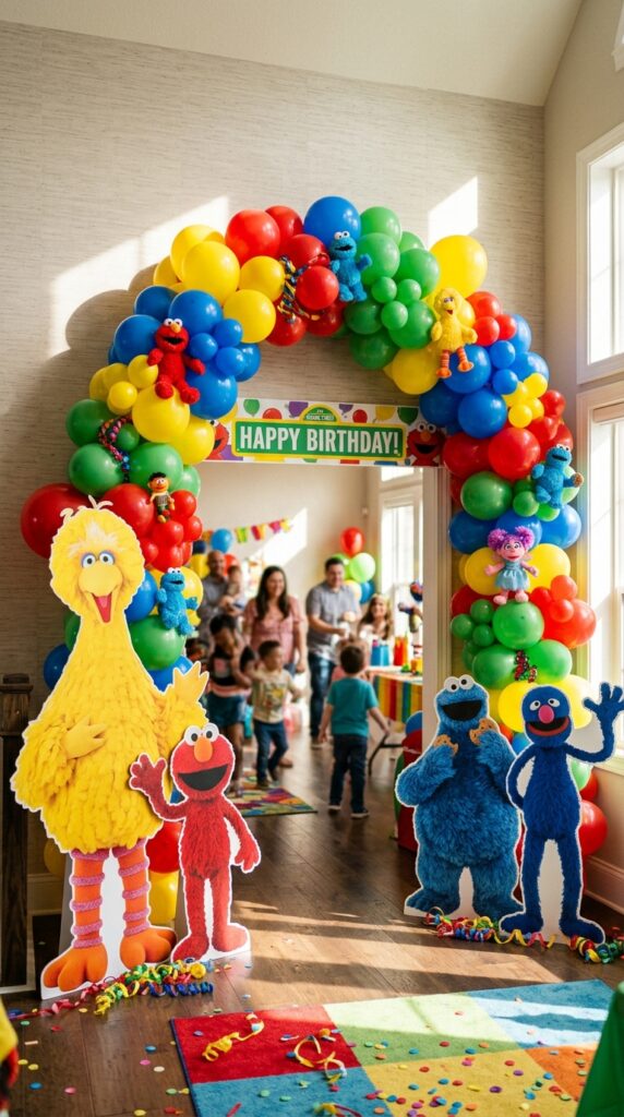 Hang a bright Sesame Street banner near your main party area and add character cutouts along the walls.