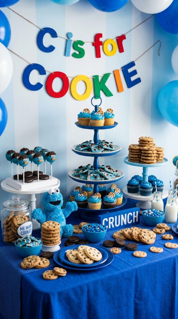 You can also get creative with Sesame Street character foods like Cookie Monster blue velvet cupcakes or Elmo-inspired red velvet cake pops to add a fun, edible dimension to your party spread.
