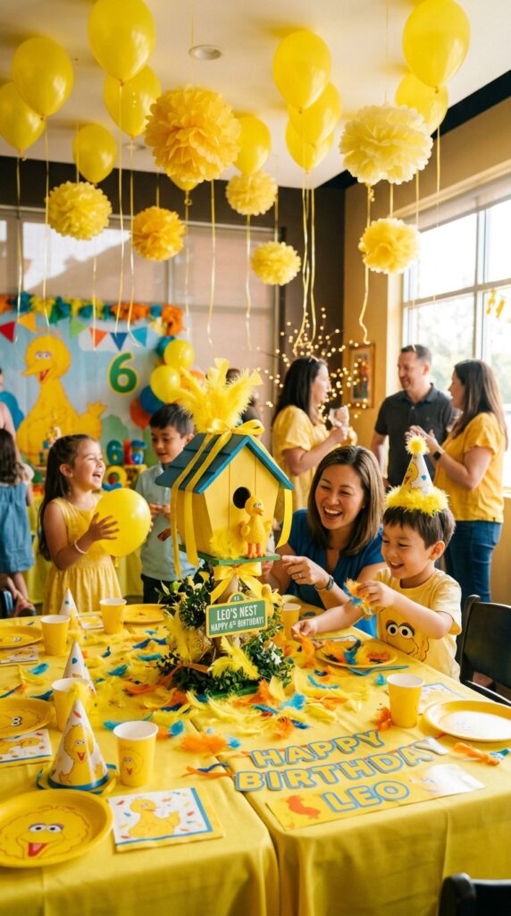 You can also incorporate Sesame Street centerpiece designs featuring Big Bird to anchor each table with a recognizable and cheerful character moment.