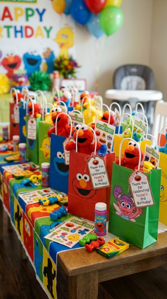 For girls especially, bright Sesame Street decorations can inspire favor bag designs that feel cohesive with the overall party theme.