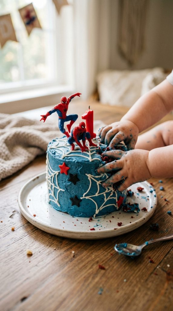 Keep the cake small enough for tiny hands to demolish easily. Add spiderman smash cake toppers like mini figurines or printed edible images to make it pop. For even more inspiration, Spiderman cake designs can serve as a stunning centerpiece that ties your entire party theme together.