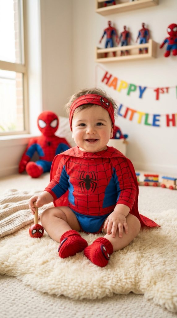 Dressing your little one as Spiderman on their big day is honestly one of the easiest wins in birthday planning. You’ll find adorable onesies, rompers, and costume sets designed specifically for babies and toddlers.