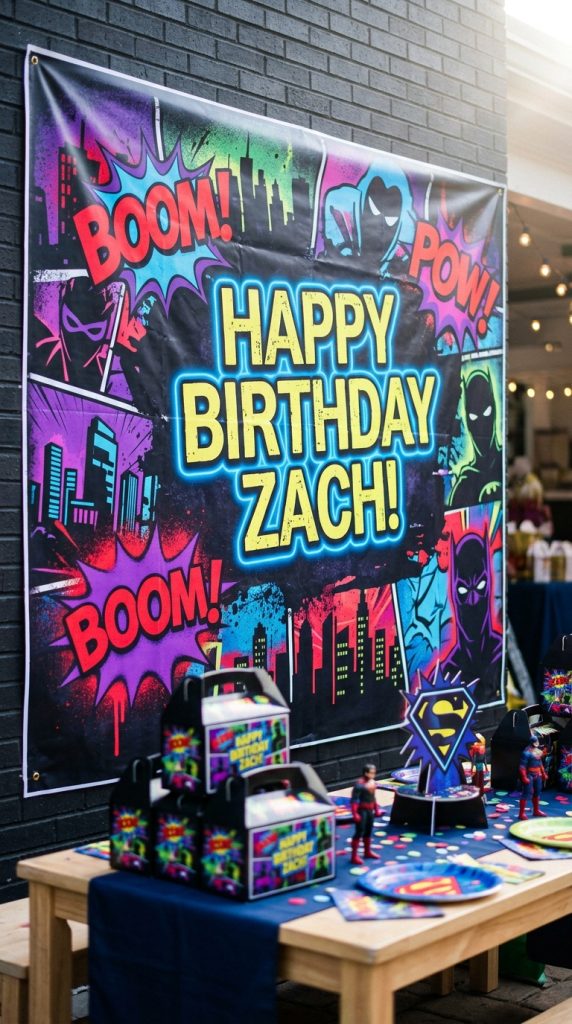 You can order custom vinyl banners online with their name woven directly into the web design. Sites like Etsy and Canva let you create name spotlight effects using bold fonts that match Spiderman’s red-and-blue palette.