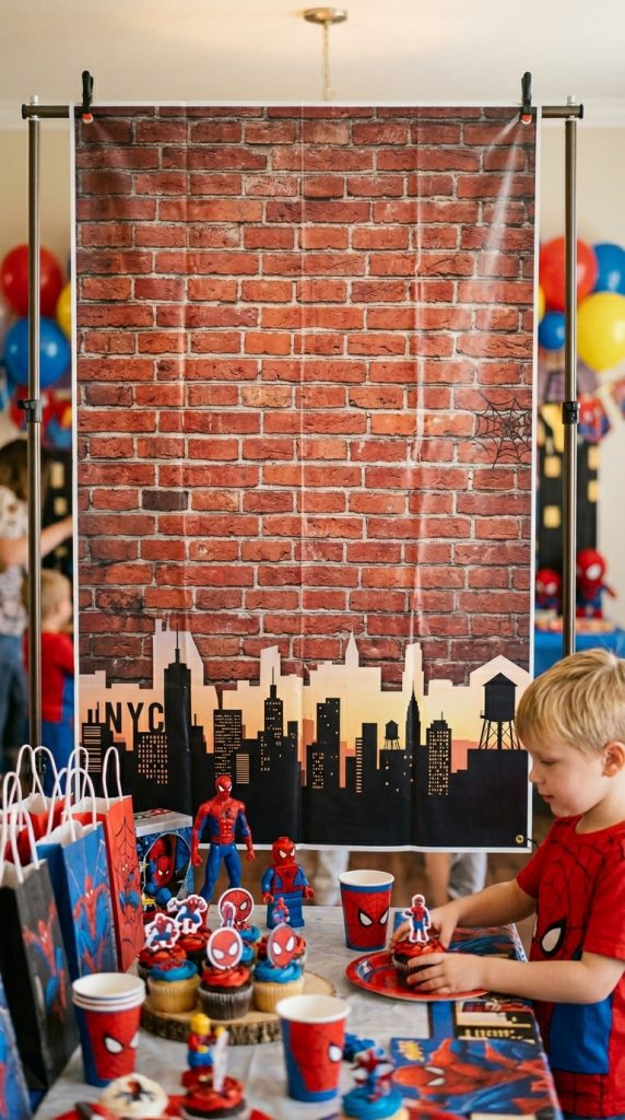 Taking your Spiderman party outside opens up a whole new set of backdrop possibilities — and honestly, some of the best photo setups I’ve seen didn’t cost much at all.