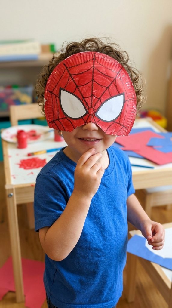 Keep supplies minimal and instructions short. Two-step projects work best at this age. You’ll get proud little Spidermen showing off their creations all afternoon.