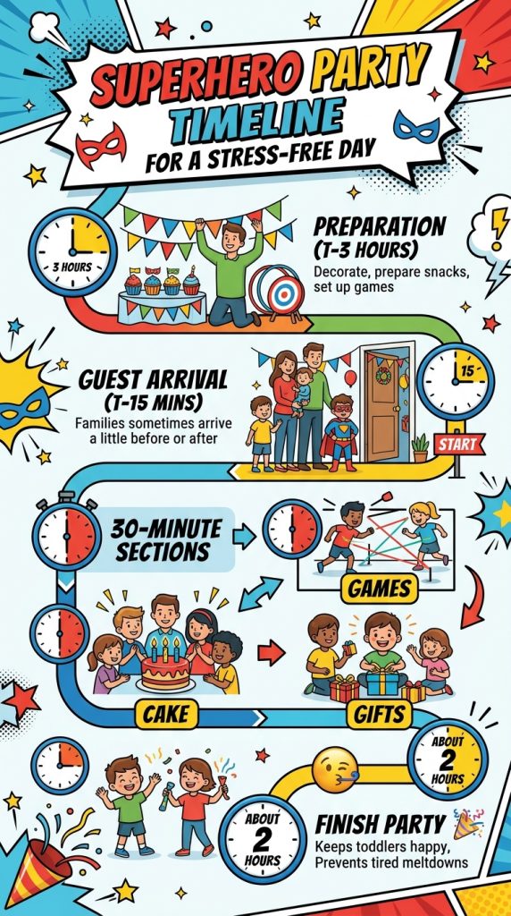 Your little superhero’s big day doesn’t have to be stressful or expensive. With the right mix of themed decor, simple crafts, and structured activity blocks, you’ll throw a party toddlers actually enjoy. Pick three or four ideas that fit your budget and your child’s energy level. Keep it simple, stay flexible, and remember — at this age, a balloon and a cupcake can make the whole day magical.