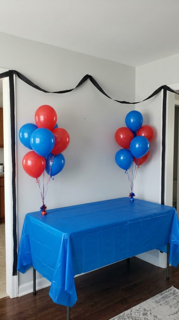 A classic Spiderman color scheme — red, blue, and black — does most of the decorating work for you. Grab red and blue balloons, a blue tablecloth, and black streamers. Done. You’ve already nailed the vibe.