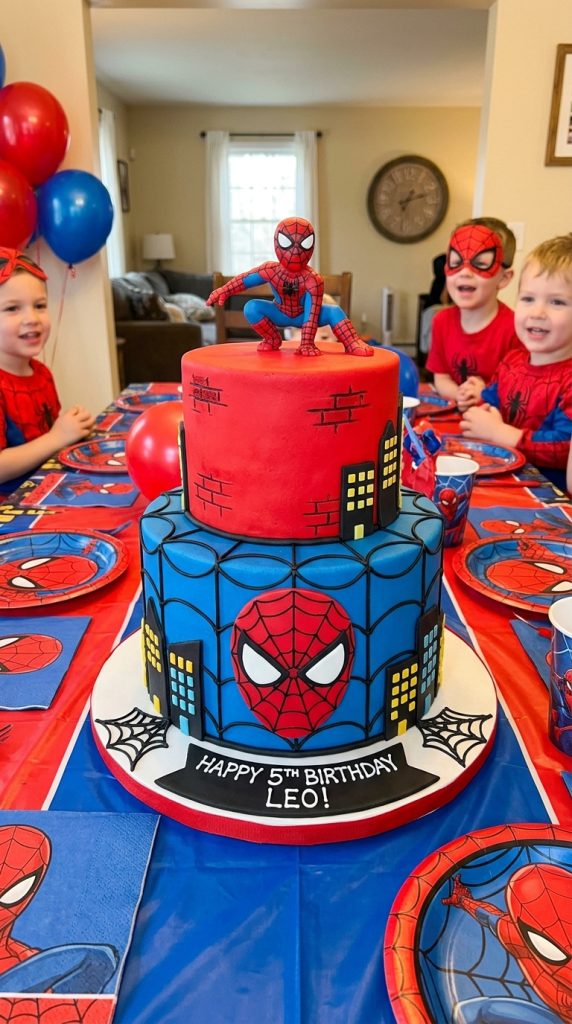 You can keep it simple with store-bought cake toppers featuring Spiderman figures, or go bold with custom fondant designs shaped like webs, masks, or the iconic red suit.