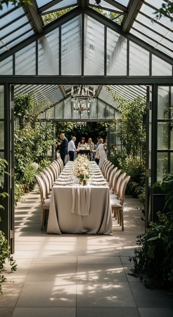 I’ve hosted showers in these spaces, and the natural ambiance eliminates heavy decorating needs. A beautiful conservatory venue provides year-round spring vibes, regardless of weather outside. The glass walls flood everything with soft, flattering light that makes everyone look radiant.