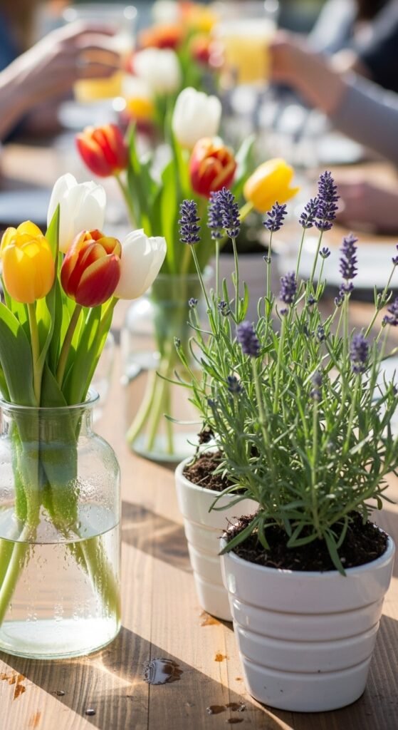 Pro tip: Mix cut flowers with small potted plants for varied heights and textures. Your centerpieces will look professionally designed while staying budget-friendly and environmentally conscious.